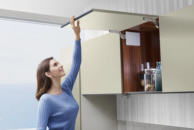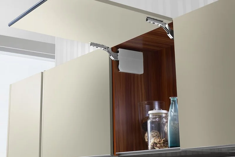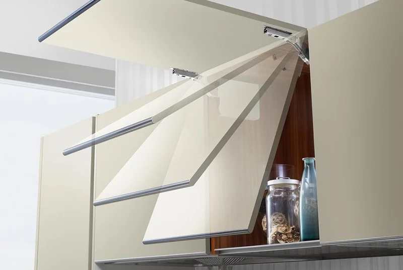 Soluzione moderna per ante a ribalta, con apertura bilanciata e chiusura ammortizzata.