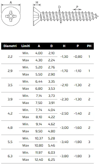 Disponibile in vari diametri (da 2,2 mm a 6,3 mm) e in diverse lunghezze, questa vite si presta a molteplici utilizzi: fissaggi su lamiera sottile, pannelli in plastica, legno e materiali compositi. La testa svasata consente un fissaggio a filo superficie, garantendo un risultato ordinato ed esteticamente pulito.
