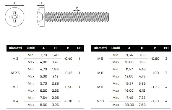 Facile da installare con avvitatori manuali o elettrici, la vite cilindrica metrica PH è una soluzione versatile e pratica, perfetta sia per professionisti che per lavori di fai-da-te.